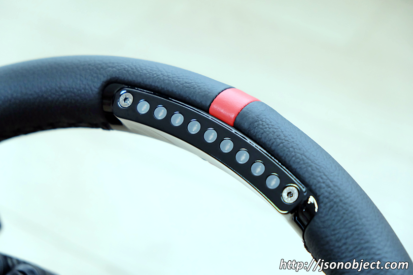 에서 진동 기능을 제거하고, 마그네틱 패들 시프터로 업그레이된 것이 특징이다. 그립감이 묵직하고 단단하여 스티어링 휠이 유사한 TCR 클래스를 즐기기에 안성맞춤이다. - 생김새는 아반떼 N의 순정 스티어링 휠과 매우 유사한데, 320mm라는 적당한 직경의 원형 모양 덕분에 올라운드로 사용하기 좋다. 전면에 버튼이 상당히 많아 다 쓰기 힘들 정도인데 VR을 쓰는 입장에서는 정말 편리하다.