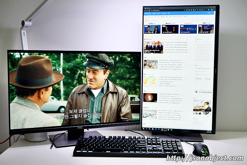 - 작업 효율 관점에서 싱글 모니터와 듀얼 모니터는 천지 차이이다. 한 번 듀얼 모니터를 경험하면 절대로 싱글 모니터로 돌아가지 못한다. 하루종일 컴퓨터 앞에 앉아야 하는 개발자가 직업이라 작업 목적으로 새롭게 27인치로 듀얼 모니터를 구성했다. 구글링 끝에