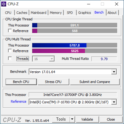 - 아래는 논오버 상태에서의 CPU-Z의 벤치마크 결과이다.